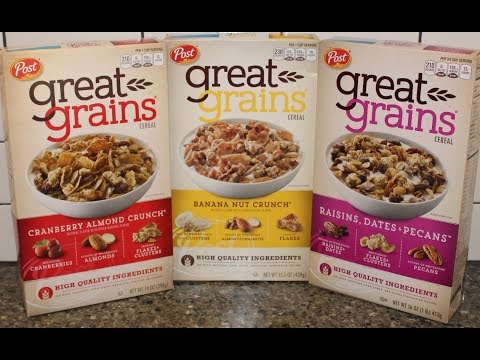 Great Grains Cereal Review }}- This is a taste test/review of the Post Great Grains Cereal in three varieties including Cranberry Almond Crunch, Banana Nut Crunch and Raisins, Dates ...