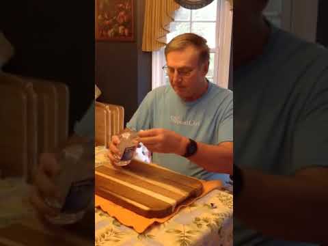 Treating the Acacia Wood Cutting Board - Acacia Wood Chopping Board - Using mineral oil to treat the new wood cutting board.