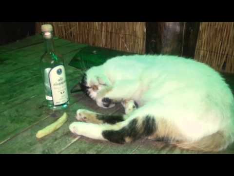 Cat hangover after Greek Ouzo - Ouzo No Hangover - This cute little cat looks like it had a bit more alcohol than it should ...!!! Sleepy cat having hangover after greek ouzo !!! (-cat is sleepy no animal cruelty here-)